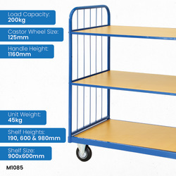 - General purpose 3 tier trolley, which can be converted into a platform trolley with sides as pictured
