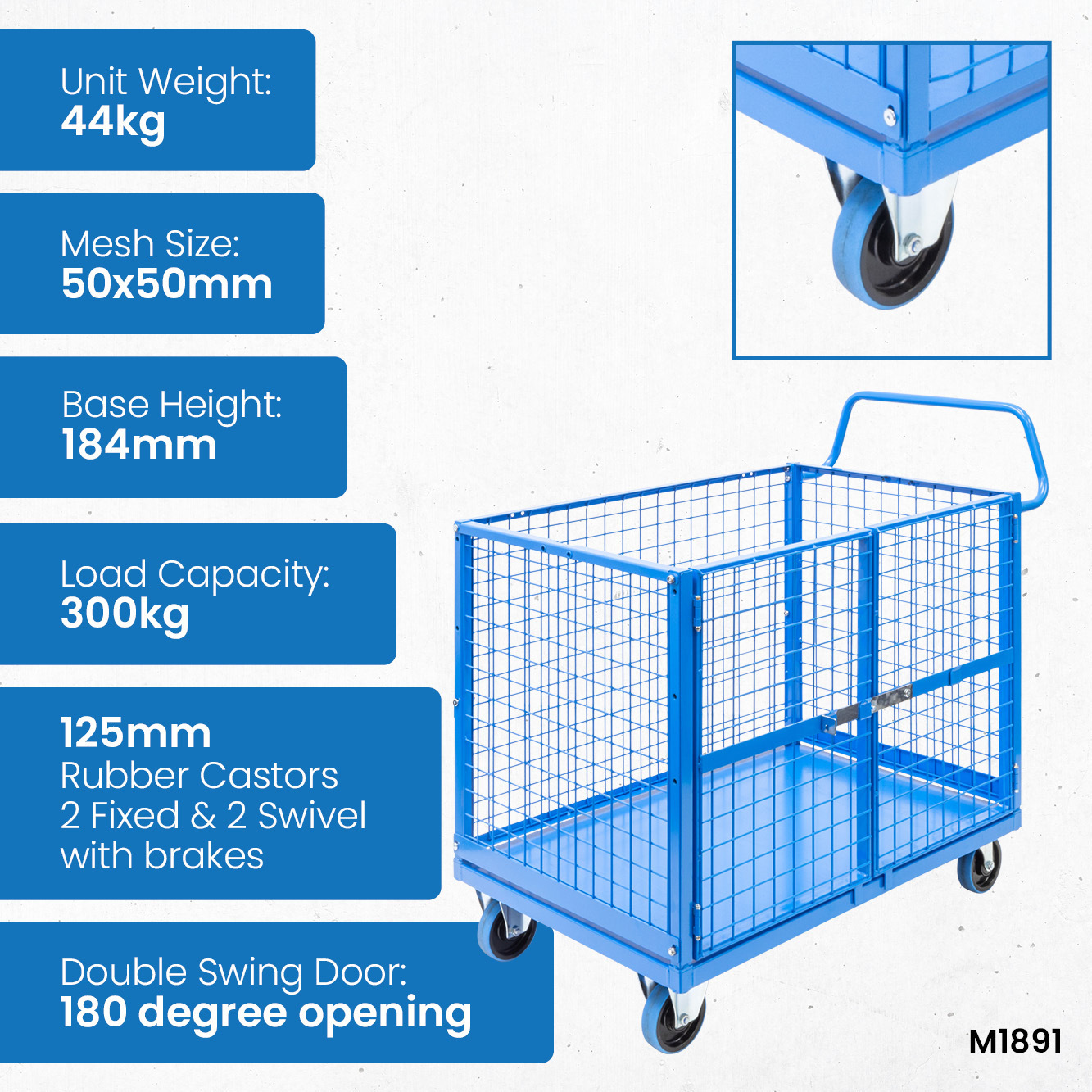 | M1891 | Mesh Cage Trolley with Lockable Double Swing Mesh Door | 44kg |