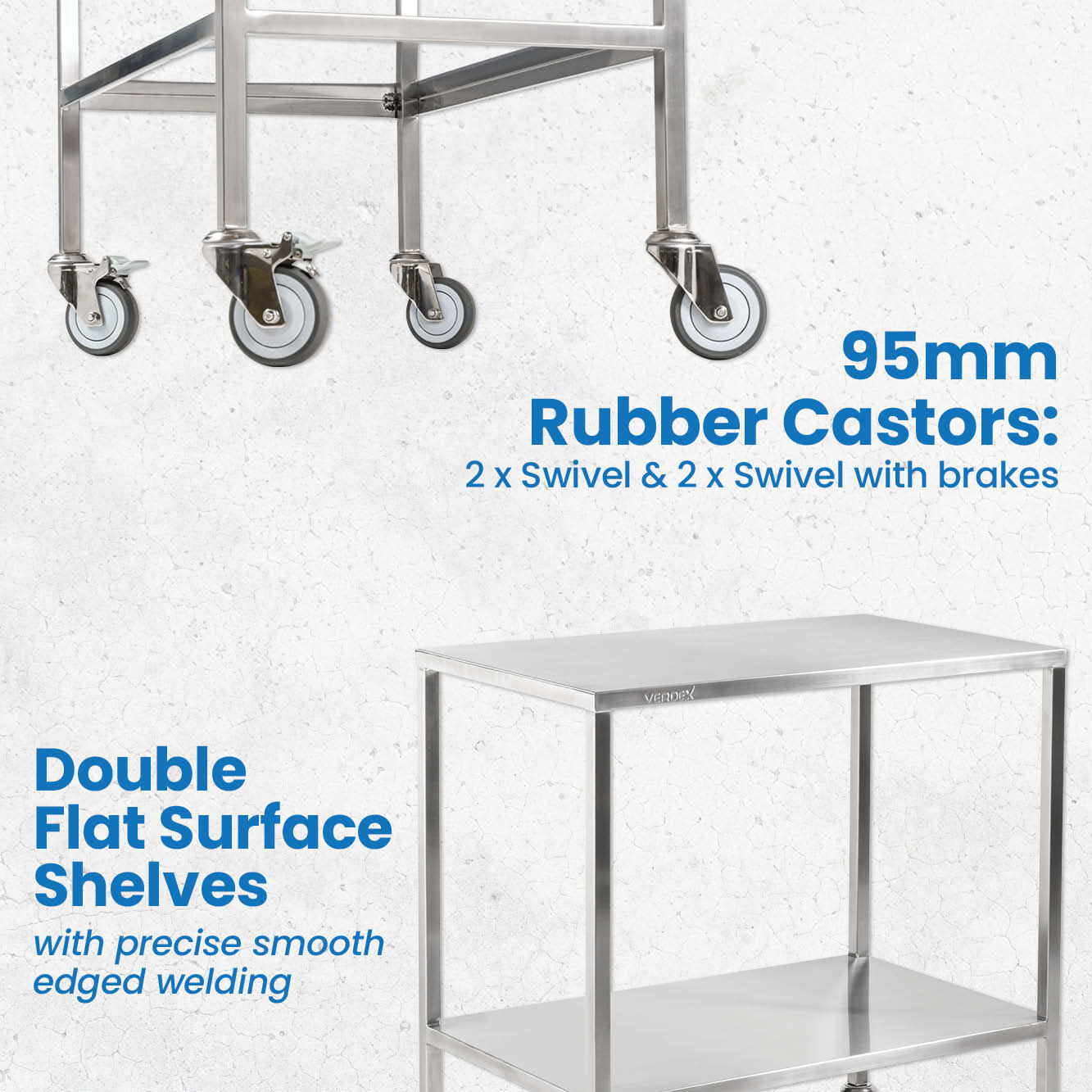 - Front Castor Locks: The front castors feature locks to ensure stability and prevent unintended movement when the trolley is stationary.