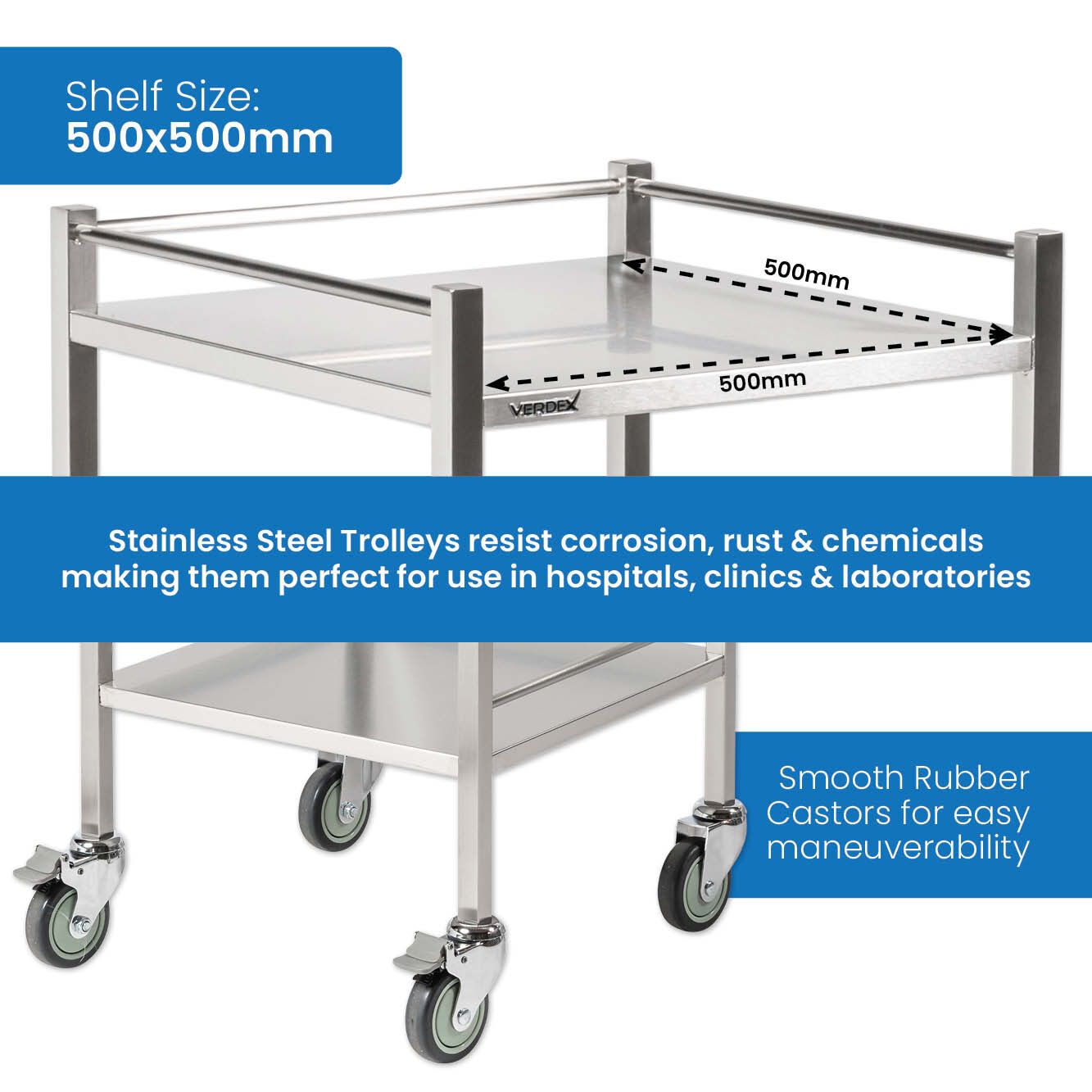 Single Stainless Steel Instrument Trolley (with Rails & No Drawer)