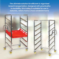 The ultimate solution for efficient and organized bread transportation. Designed with practicality and durability in mind, this trolley revolutionises the way bakeries, retail chains and food establishments handle their bread crates.