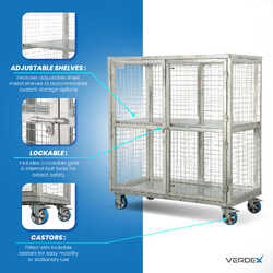 The Bulky Goods Mesh Cage Trolley offers a strong and reliable way to move and store oversized goods, equipment, or luggage. Commonly used in warehouses, logistics operations, and aviation environments, this zinc-plated steel trolley is designed for durability and long service life. Mesh sides and solid sheet-metal shelves provide both visibility and containment, while a removable centre shelf allows space for larger items. With lockable castors for smooth transport or fixed positioning, plus a secure gate and internal bolt locks, it ensures safety and convenience in demanding workplaces.