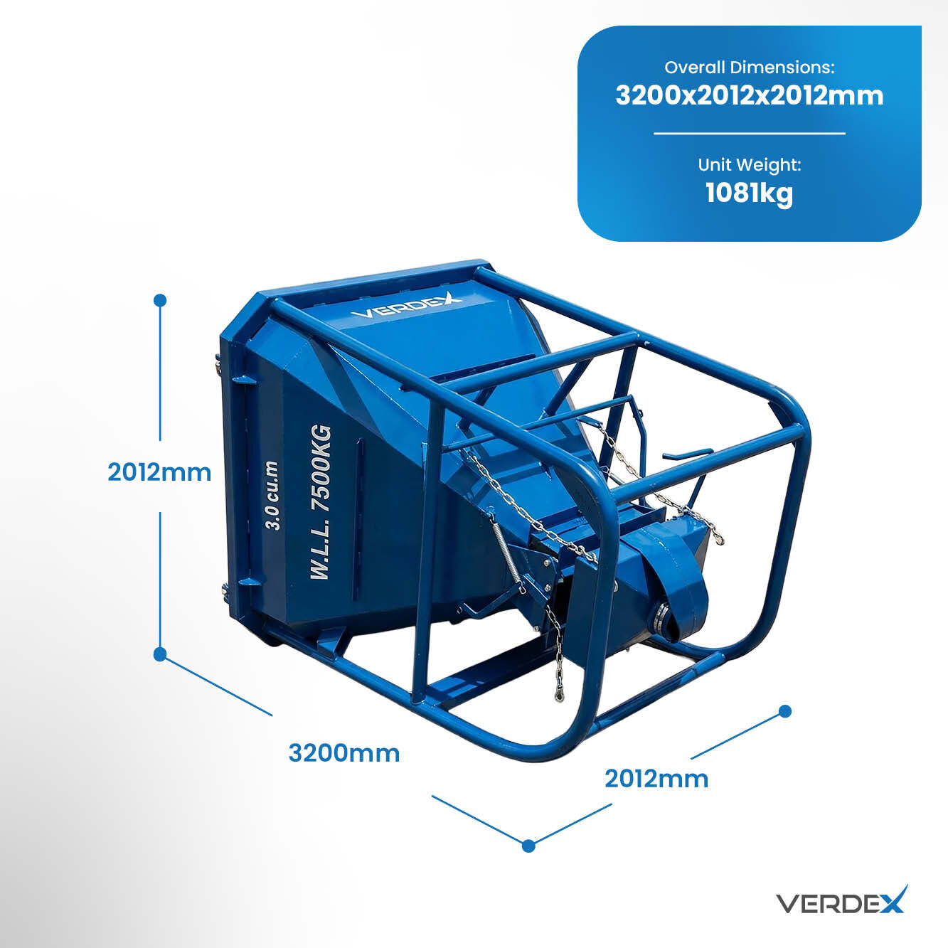 Versatile Capacity Options: The Kibble is available in models suited for large applications, with capacities available for up to 3 cubic meters. This ensures suitability for a wide range of project requirements, offering flexibility and versatility.