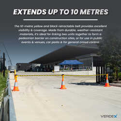 Cone Top 10m Retractable Barrier - Black/Yellow