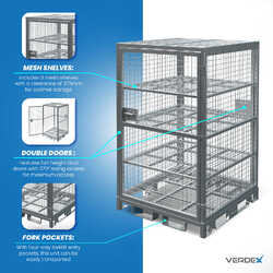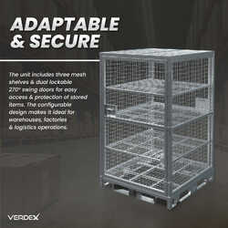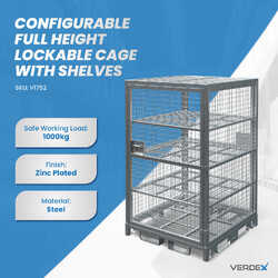 The Configurable Full Height Lockable Cage with Shelves provides a secure and versatile storage solution for demanding industrial environments. Made from zinc-plated steel for superior strength and corrosion resistance, it features three mesh shelves and dual lockable 270° swing doors for convenient access and protection of stored items. The configurable design allows flexible setup to accommodate different storage applications, while a Safe Working Load (SWL) of 1000kg ensures dependable strength under heavy use. Optional castors and floor locks enhance mobility and stability, making it ideal for warehouses, factories, and logistics facilities.