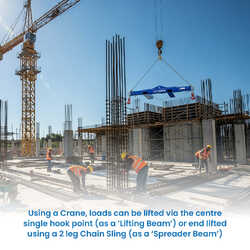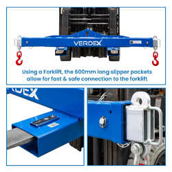 When used with a crane, loads can be lifted via the center single hook point or end lifted using a 2-leg chain sling. Alternatively, when lifted by forklift, the 600mm long slipper pockets allow for quick and secure connection to the truck.