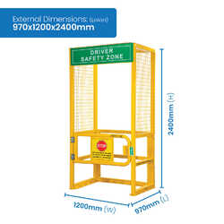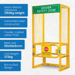 The Driver Safety Zone Cage provides a dedicated, high-visibility area where drivers can safely stand during vehicle movements, loading, or unloading activities. Designed to enhance on-site safety, this steel-framed enclosure helps isolate drivers from active work zones, reducing the risk of injury caused by falling goods or machinery in operation.