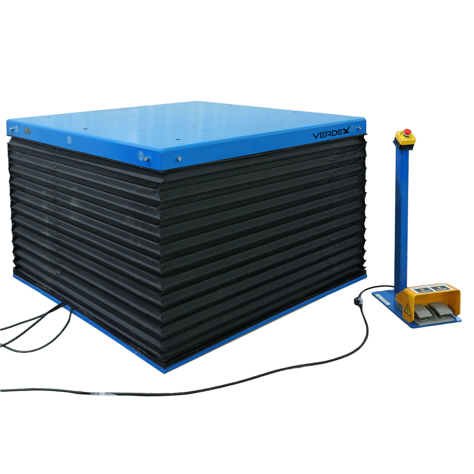 The Electric Single Lift Table – 2000kg makes lifting and positioning heavy items easy and safe. It uses a strong electric scissor design to smoothly raise and lower loads with a hardwired control pendant or foot pedal switch. Built from durable, powder coated steel, the table is designed to handle tough working conditions. A safety curtain under the platform helps prevent accidents during operation. Suitable for both floor-mounted and in-ground setups, it also includes removable lifting eyes for quick installation and maintenance. This lift table is ideal for warehouses, factories, and workshops needing reliable and efficient material handling.