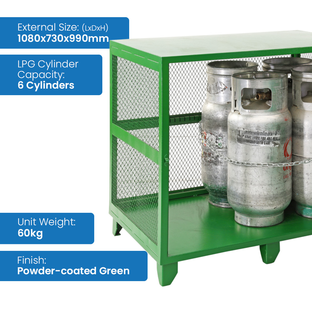 - LPG Gas Cylinder Capacity: The cage can accommodate up to 6 LPG cylinders, providing ample storage space for multiple cylinders.