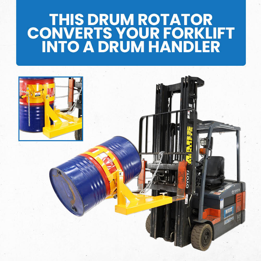 - Whether you're dealing with 210-litre steel or plastic drums, this rotator provides the capability to lift, raise, and tilt loaded drums with ease and precision, enhancing productivity and safety in your workplace