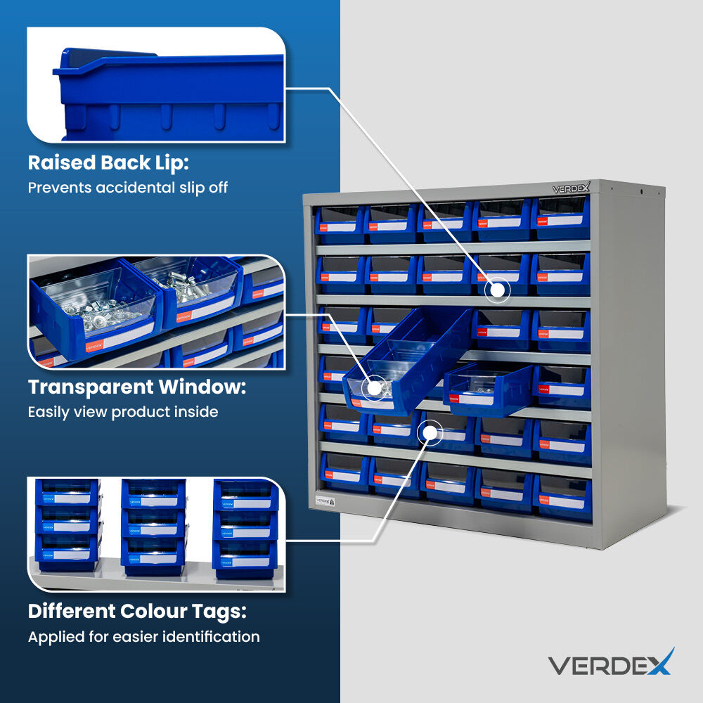 - Spacious Design: Offers ample storage space with 30 parts trays included, providing sufficient capacity for storing a variety of parts and components.