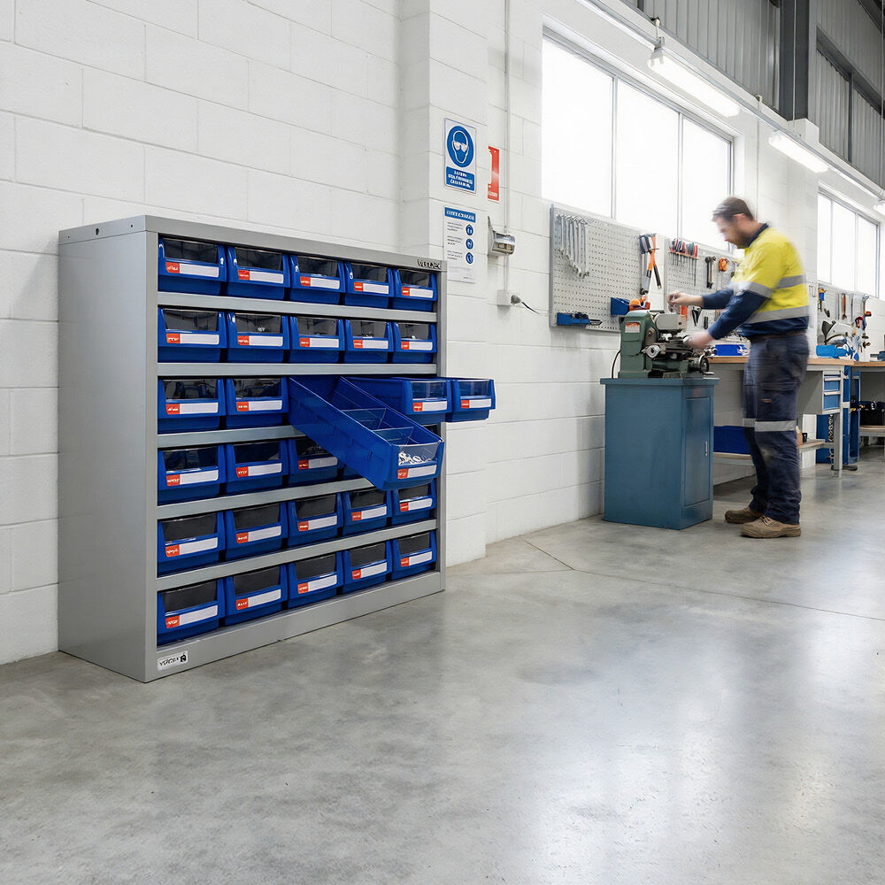 Overall, the Heavy Duty Parts Cabinet with 30 Part Trays offers a practical and efficient solution for storing parts, providing durability, organization, and convenience in industrial and workshop environments. View the range of Tooling Cabinet MHA have for sale, here.