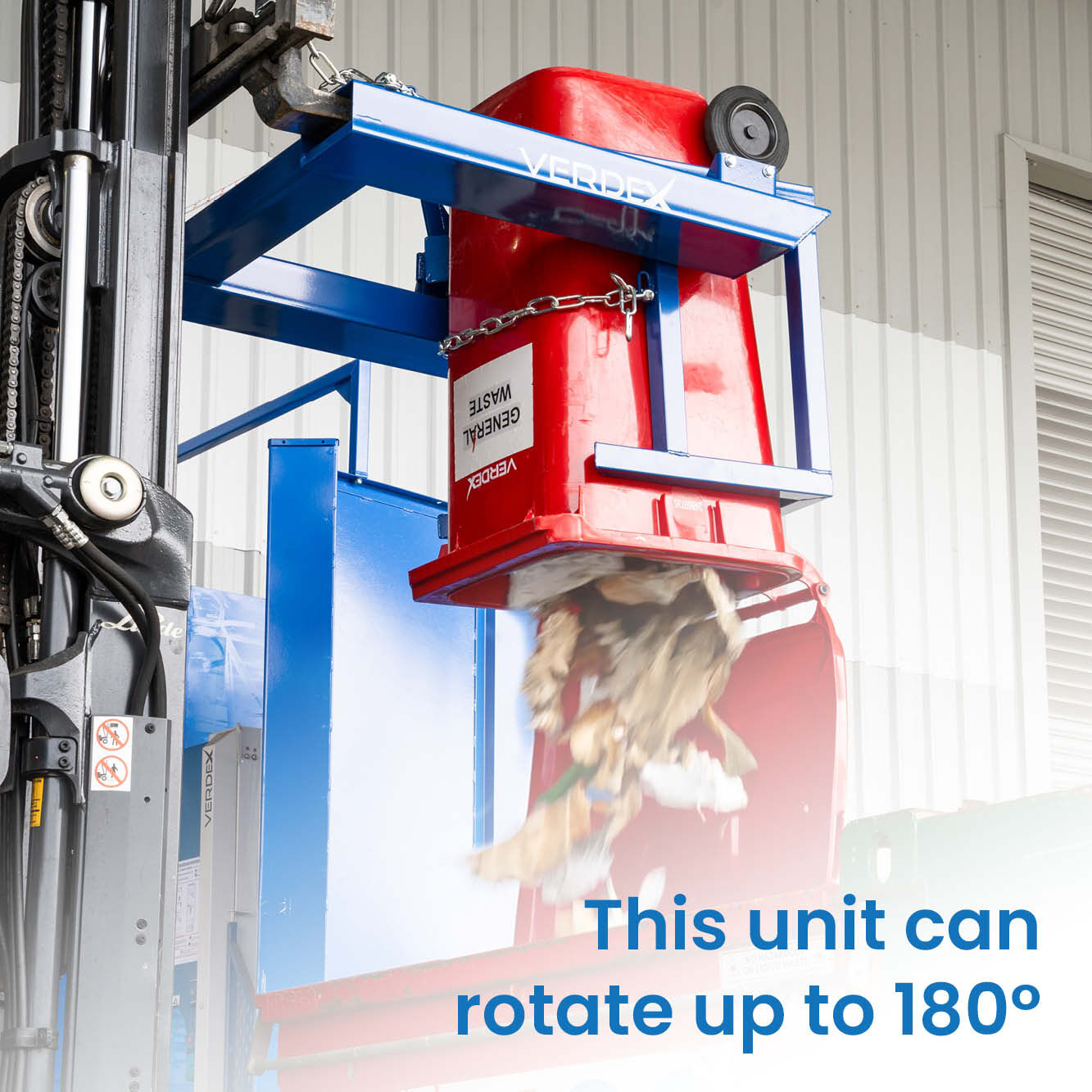 180-Degree Tipping: The tipper offers a 180-degree tipping operation, providing full access to the bin contents for efficient emptying. This feature ensures thorough disposal of waste materials and contributes to overall productivity.