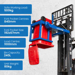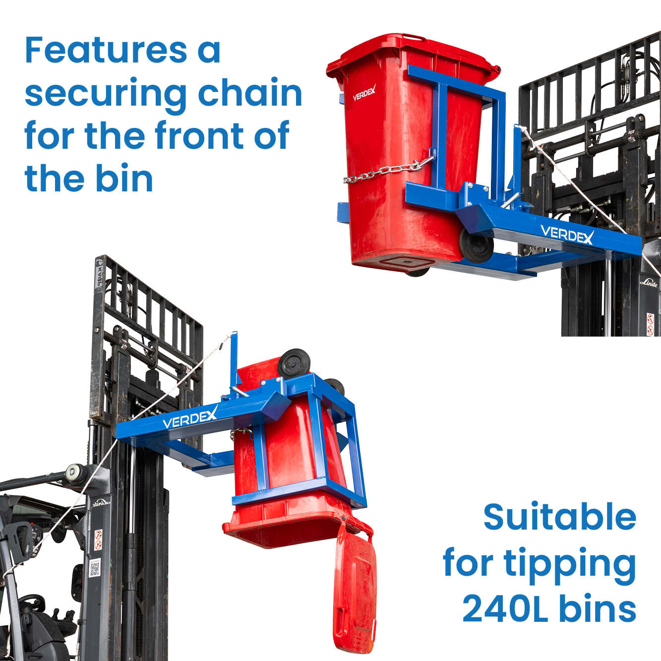 Bin Compatibility: This tipper is specifically designed for tipping 240-litre bins, making it suitable for various waste management applications. It provides a convenient solution for emptying standard-sized bins commonly used in commercial and industrial settings.