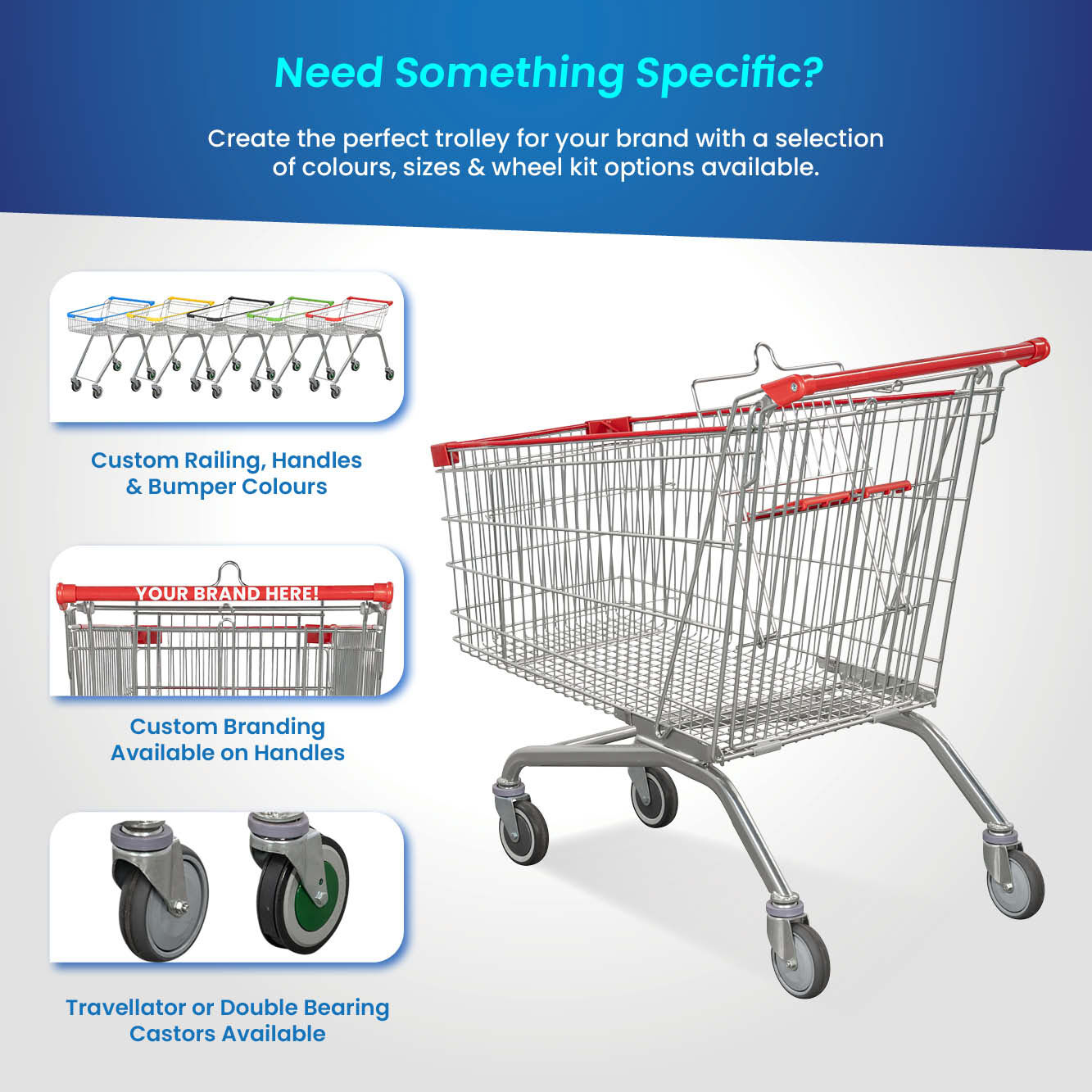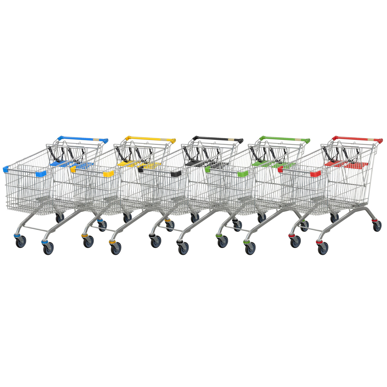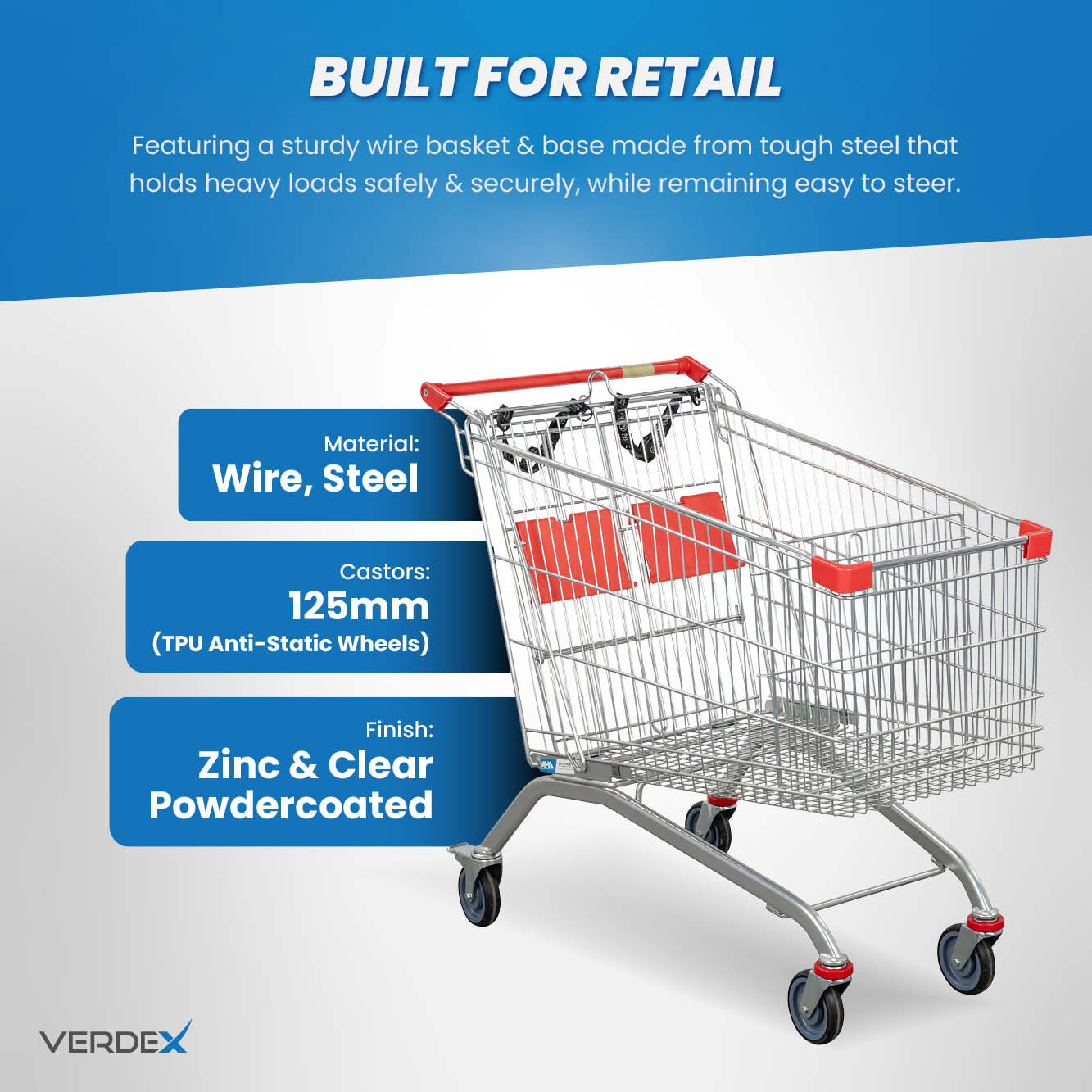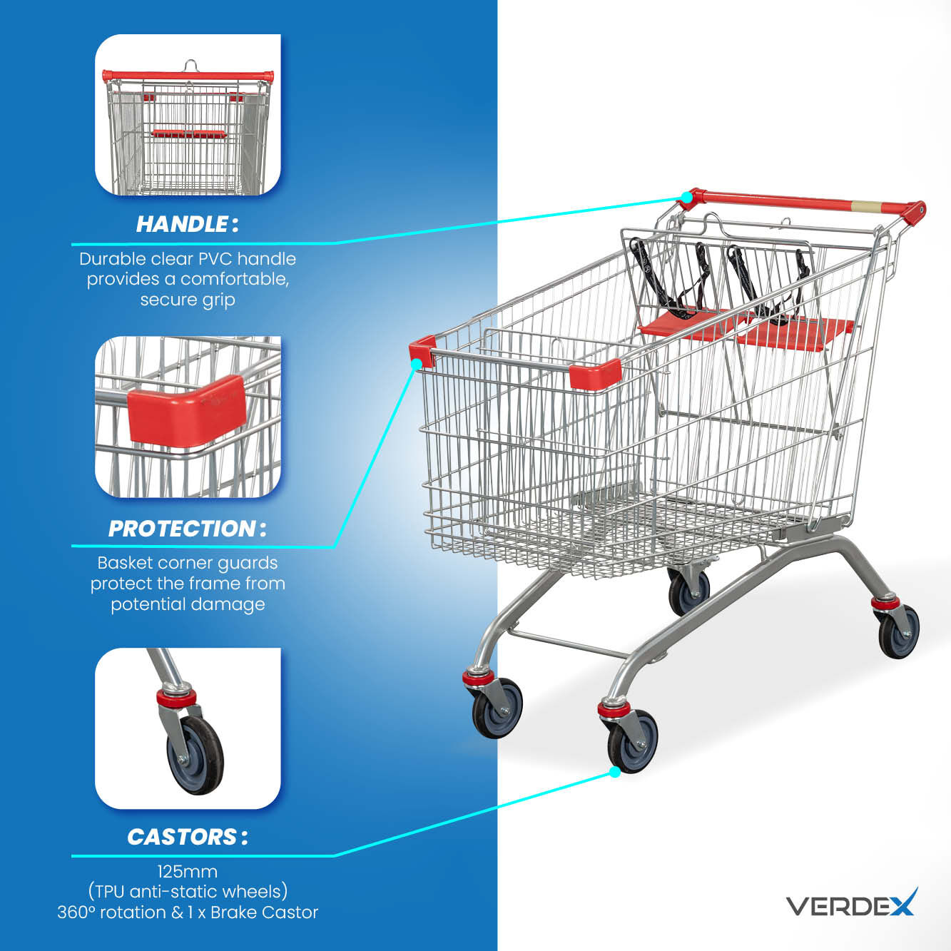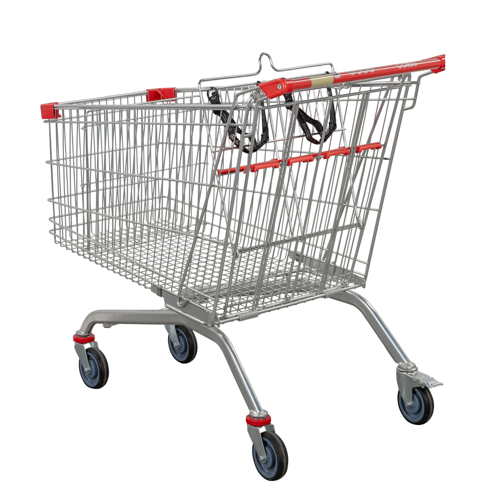 The Shopping Trolley with Baby Seat & Straps (212L) is a strong and reliable choice for supermarkets, grocery stores, and large retailers. Made from durable steel with a zinc and clear powder coated finish, it’s built to handle heavy loads while staying easy to clean and maintain. The trolley features a front basket divider, foldable child seat with safety strap, and corner guards for added protection. Its nesting design allows easy storage, making it a practical solution for busy retail environments.