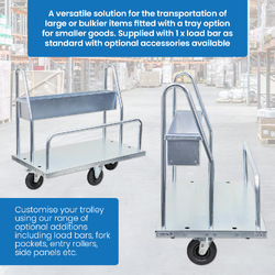 - A versatile solution for the transportation of large or bulkier items fitted with a tray option for smaller goods