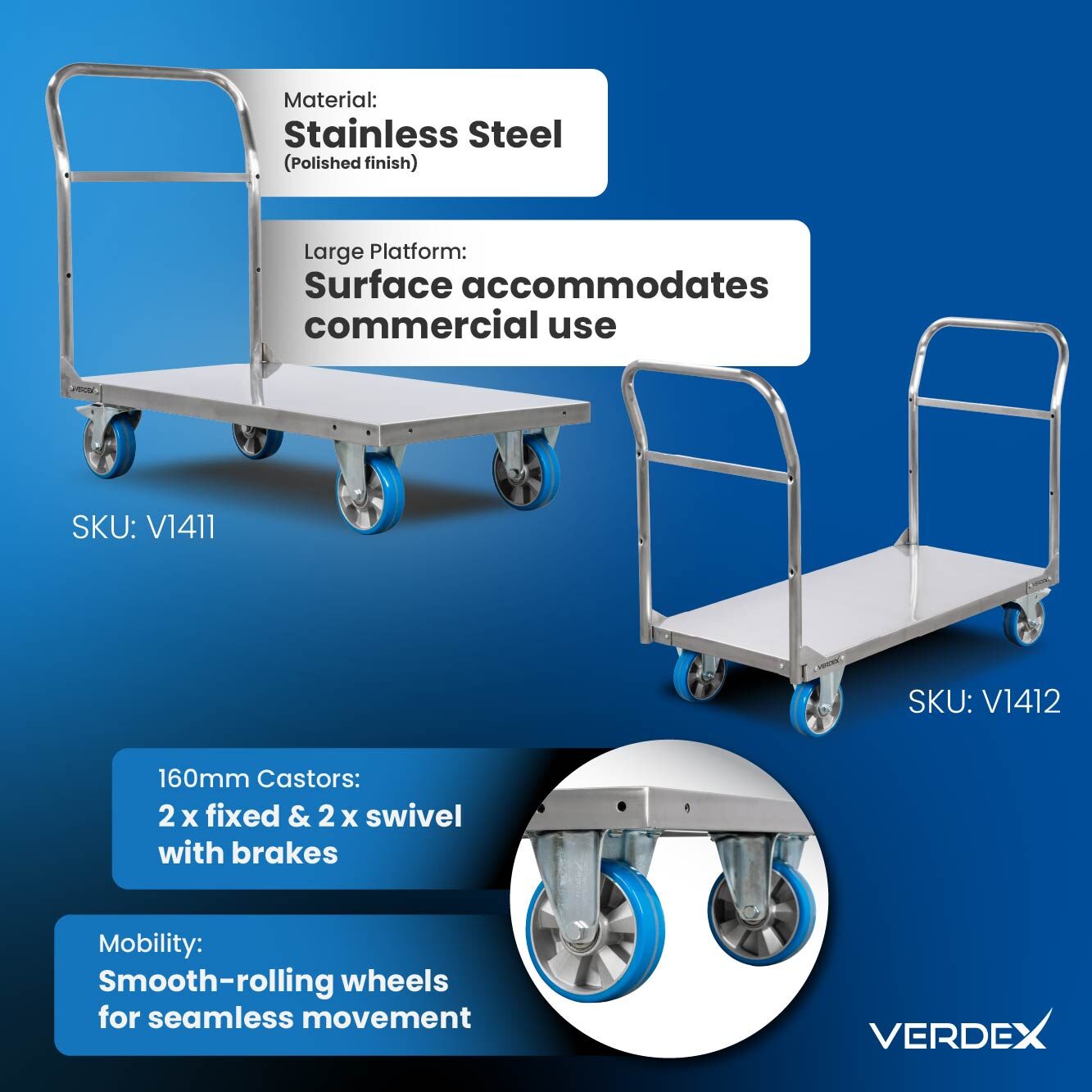Stainless Steel Double Handle Platform TrolleyProduct Code: V1412