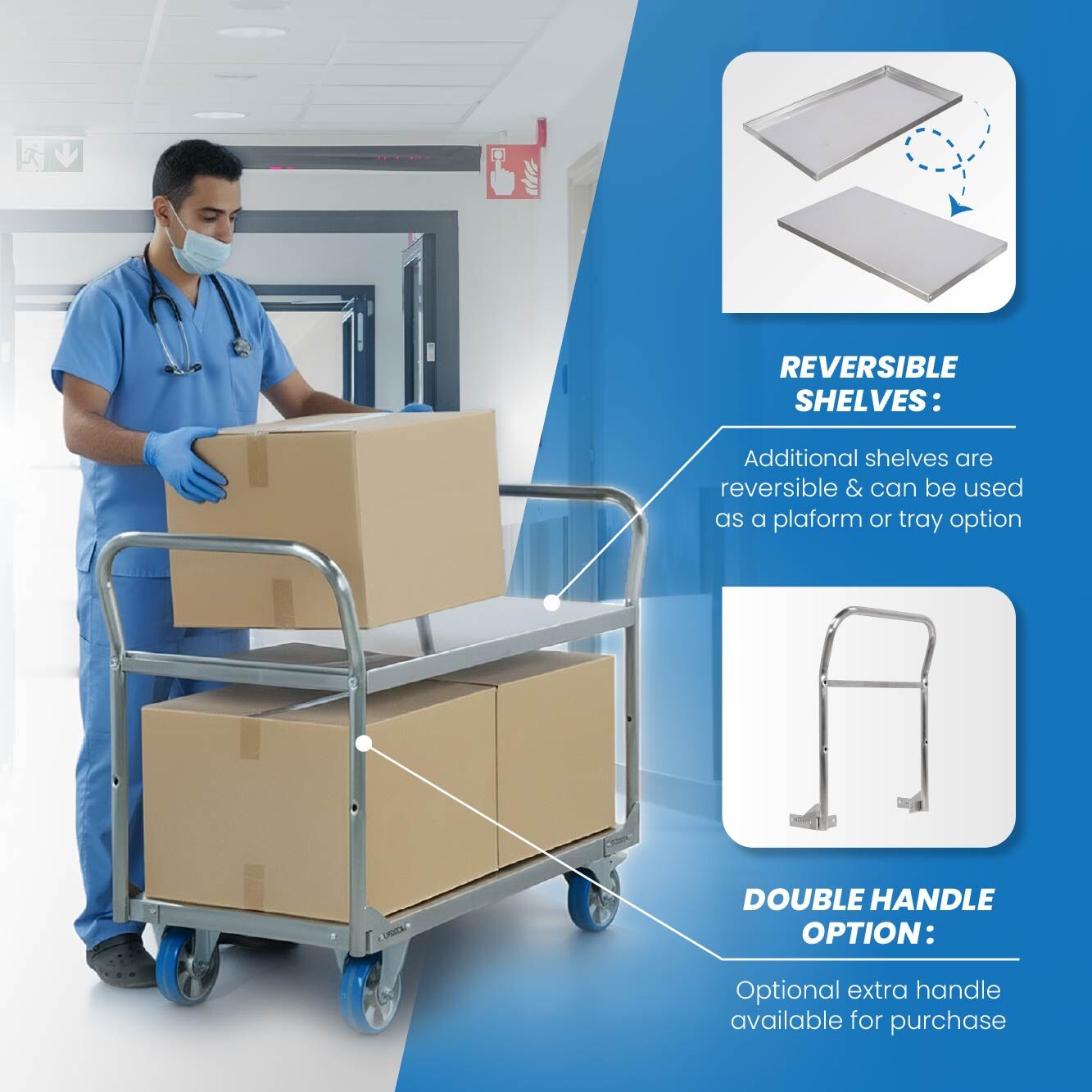 Stainless Steel Double Handle Platform Trolley - 2 Tier |